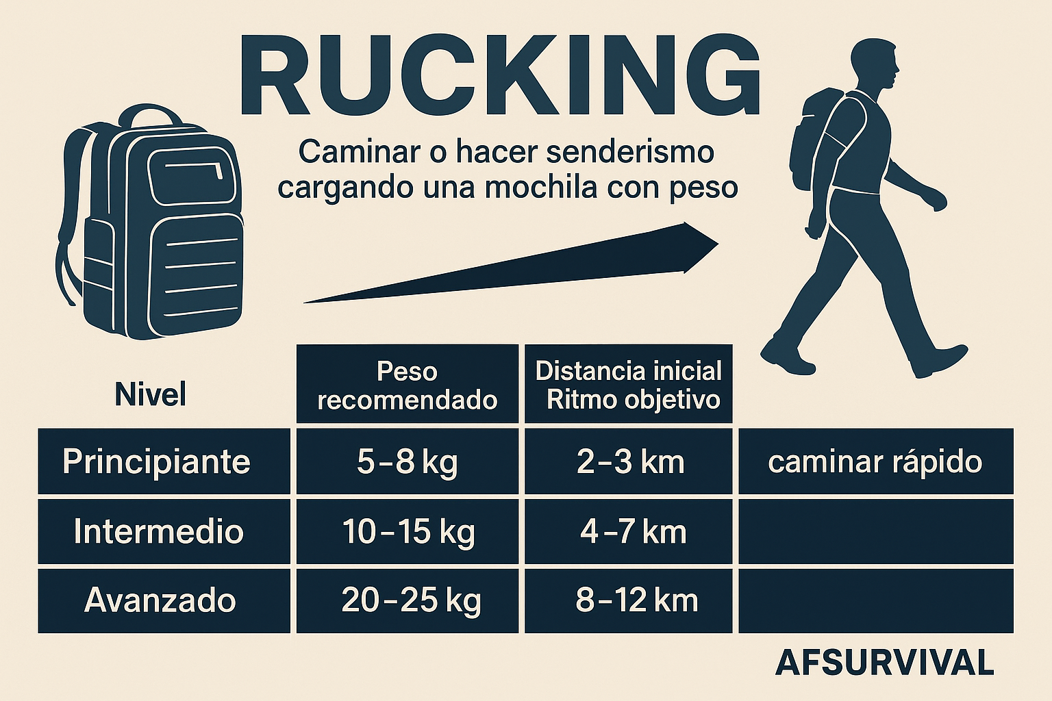 El rucking puede parecer sencillo —caminar con una mochila con peso—, pero detrás de este proceso se encuentra una metodología: